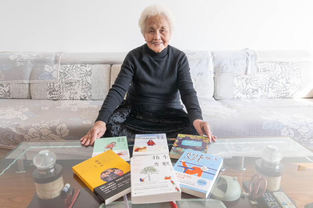 在黑龙江省绥化市北林区的家中,姜淑梅老人展示她出版的6本书(2024年3月5日摄)。60岁识字,75岁写作,80岁画画。87岁时,她已写下60余万字,画了300余幅画,出版了6本书。姜淑梅在自己的晚年生活中,实现了从文盲到作家的华丽蜕变。姜淑梅最初的习作是由同为作家的女儿张爱玲贴到博客上的。2013年4月起,姜淑梅的文字开始在杂志期刊上发表,同年10月,处女作《乱时候,穷时候》出版,让姜淑梅收获了万千粉丝,成为“网红作家”。