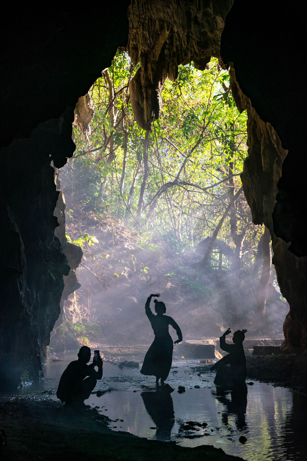 云南省临沧市耿马傣族佤族自治县民族歌舞团团长王峰(左)在拍摄傣族女创拳小视频(2023年3月23日摄)。王峰带领歌舞团演员们深入民间采风,走访多位老艺人和非遗传承人,把散落在民间的傣族马鹿舞、女创拳和传统古乐收集起来,挖掘提炼、搬上舞台,打造成艺术精品。网上一度掀起“春天傣族舞挑战”热潮,作为配乐的傣族舞曲《南西米》也走红网络,舞曲原创团队就是耿马傣族佤族自治县民族歌舞团。